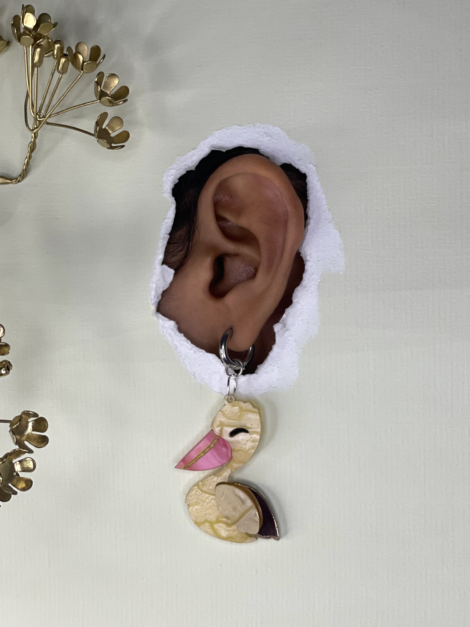 Inspired by the elegance of swan, Cygna is a cute yet sophisticated statement piece in a beige and copper palette. Designed for both style and comfort, it comes with a small, lightweight earring hoop that sits effortlessly on your ears.
